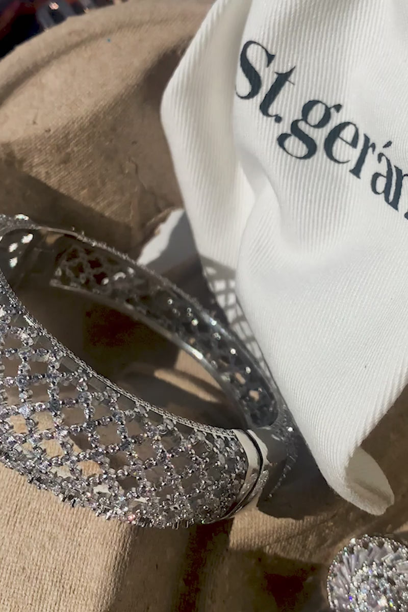 Ornate Diamond - Cut Silver Bangle – Opaline Royal Bangle - St geran